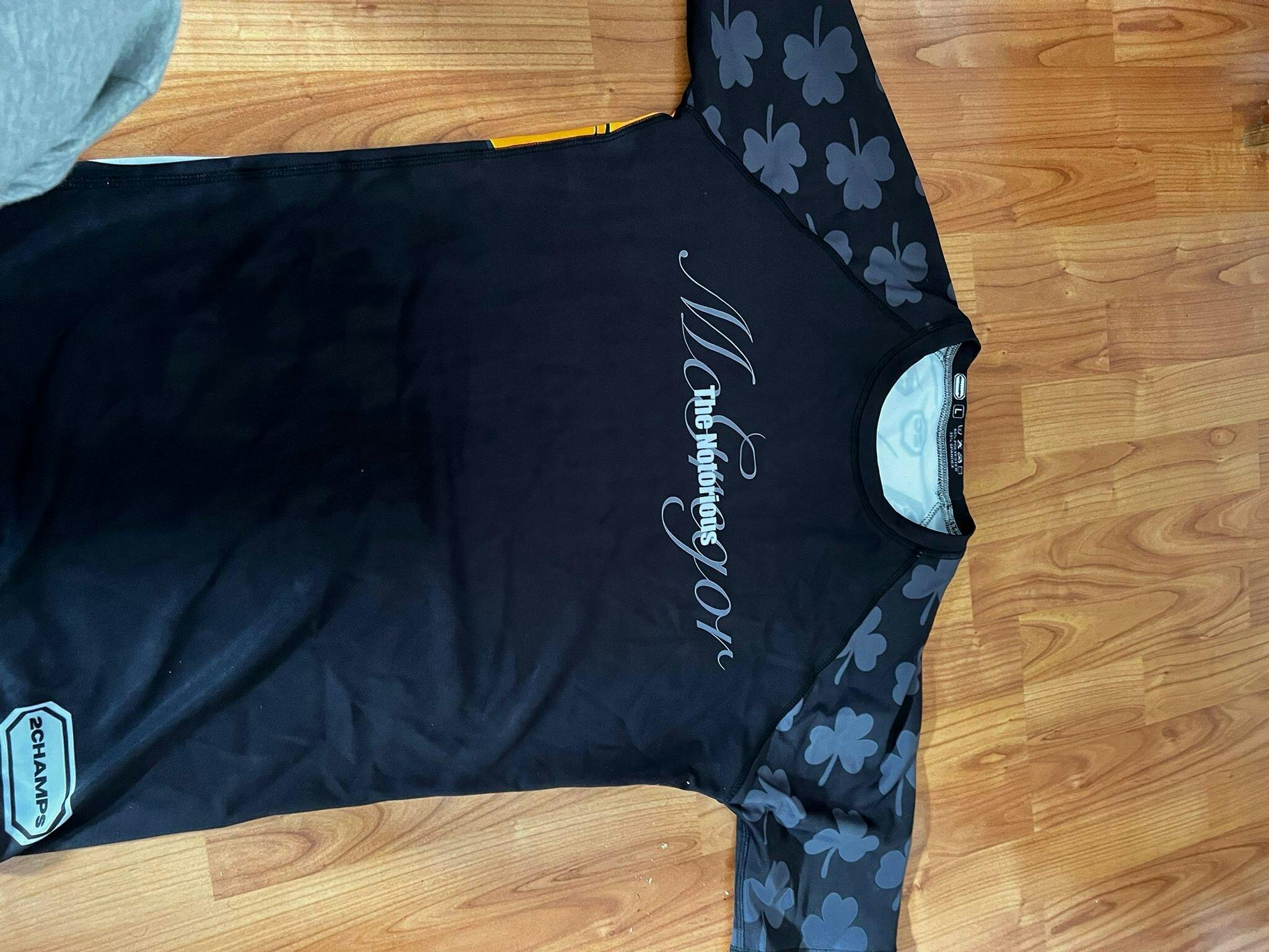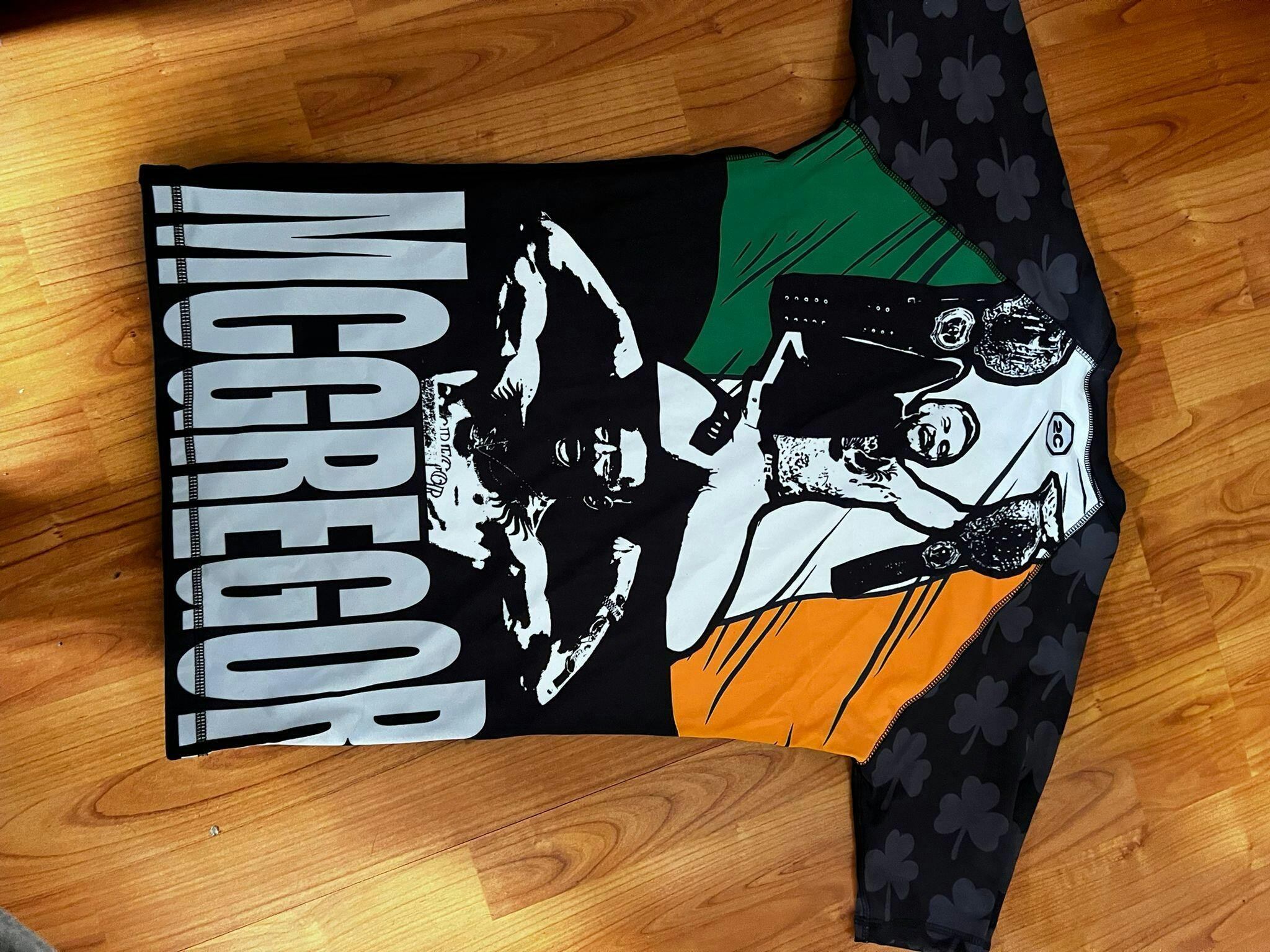 Technical rashguard inspired by Conor McGregor, designed for MMA and mixed martial arts training. Crafted from high-quality materials that offer durability and comfort during intense sessions. The fabric provides moderate compression and excellent breathability, keeping the body dry and protected. Ideal for athletes looking for professional-level gear with both style and performance. Perfect for training and competition.